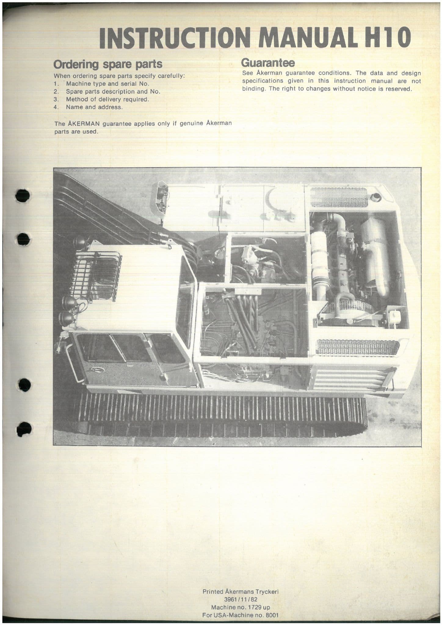 THIS OPERATORS MANUAL GIVES INFORMATION ON THE OPERATION, LUBRICATION,