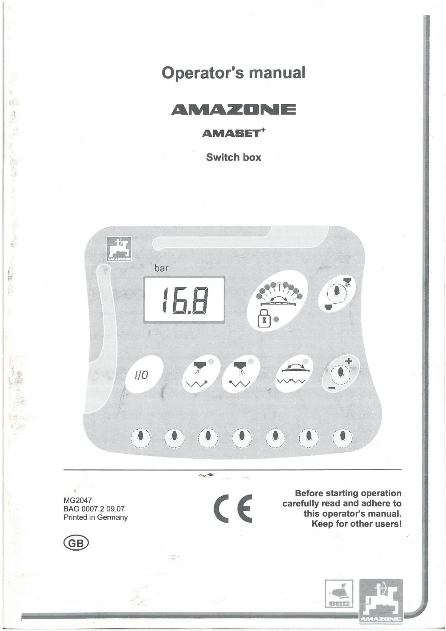 Amazone Control Terminal Switch Box AMASET Operators Manual