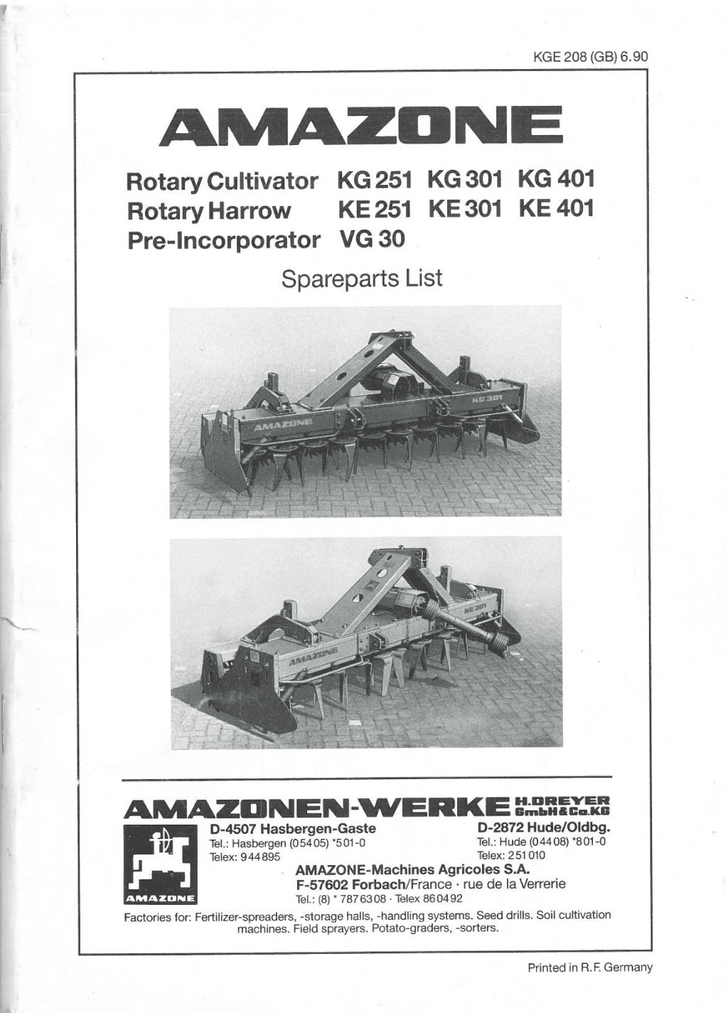 Rotavator Manuals Home / Implements Manuals / Tillage & Cultivation Manuals / Rotavator Manuals / Amazone Rotary Cultivator Harrow KG251 KG301 KG401 KE251 KE301 KE401 VG30- Parts Manual - ORIGINAL Amazone Rotary Cultivator Harrow KG251 KG301 KG401 KE251 KE301 KE401 VG30- Parts Manual - ORIGINAL Amazone Rotary Cultivator Harrow KG251 KG301 KG401 KE251 KE301 KE401 VG30- Parts Manual - ORIGINAL £24.99 Stock Status: In Stock Add to your Wish List Information Specifications Reviews ILLUSTRATED PARTS MANUAL WITH EXPLODED DIAGRAMS SHOWING VARIOUS COMPONENTS AND THE PART NUMBERS A REPRODUCTION OF THE ORIGINAL FOR AN ENLARGEMENT CLICK ON THE IMAGE Store Ref - GTC2B new23: 1 Product Code: GTC2B Weight: 0.2kg Customer reviews No reviews left yet Write A Review Most RecentTop Rated No reviews have been left for this product, be the first to leave a review