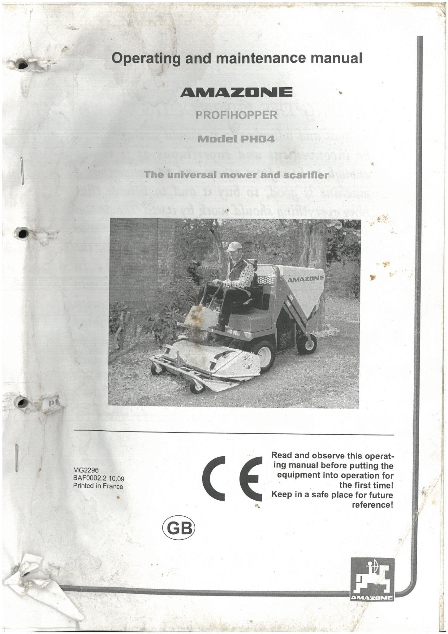 Amazone Universal Mower Profihopper PH04 Operators Manual