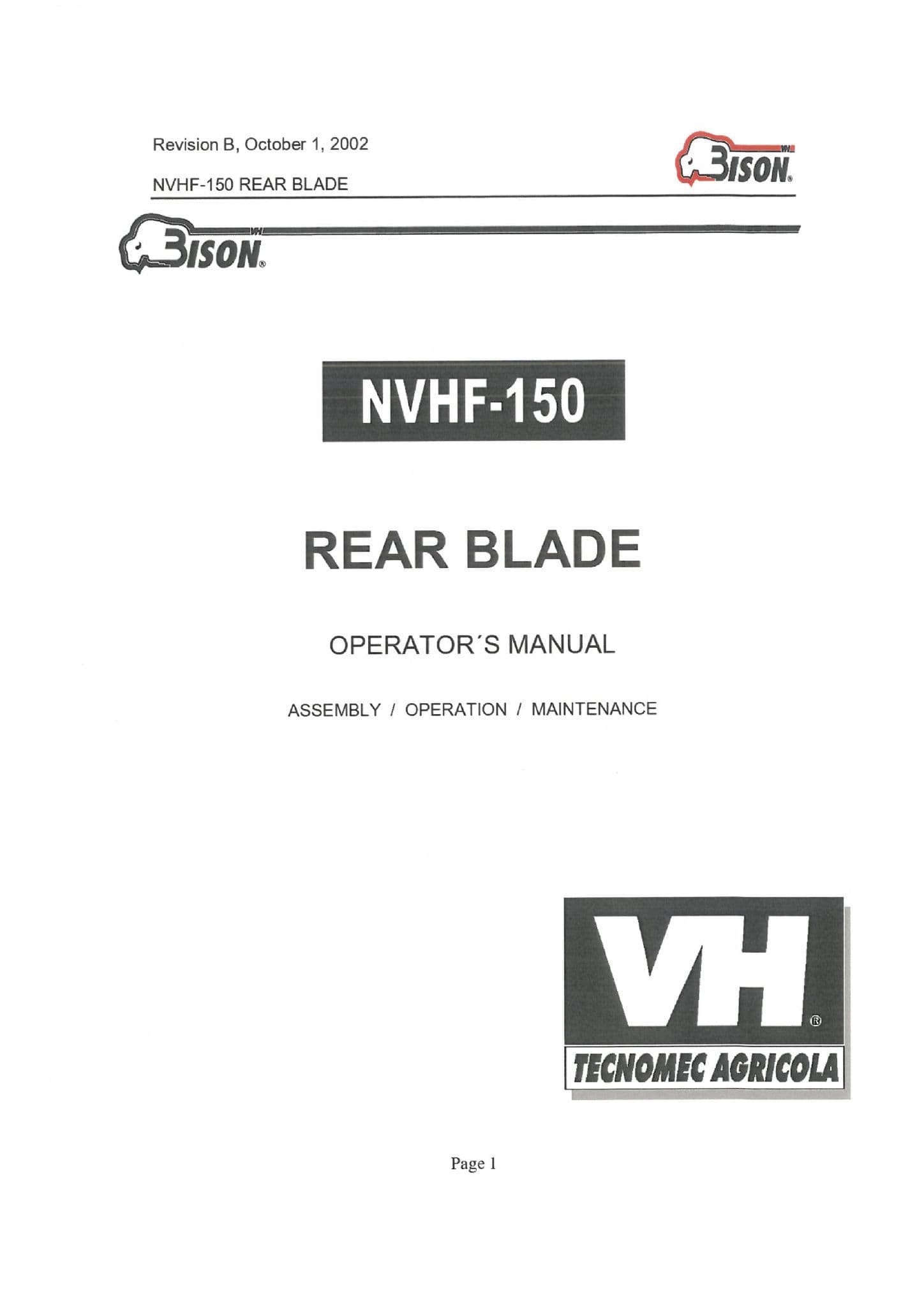 Bison Rear Blade NVHF150 Operators Manual