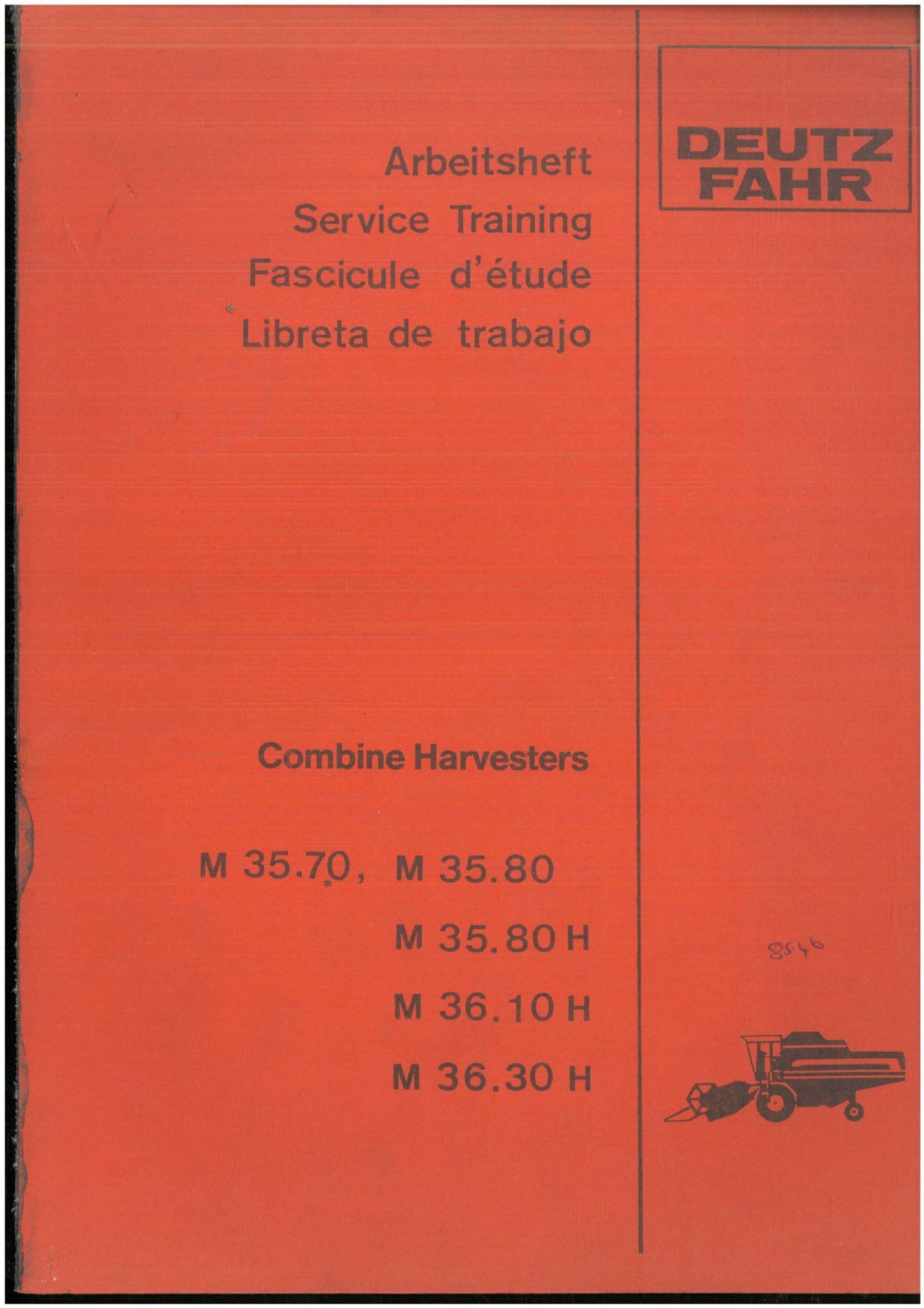 Deutz Fahr Combine M35.70 M35.80 M35.80H M36.10H M36.30H Service Training Manual - ORIGINAL