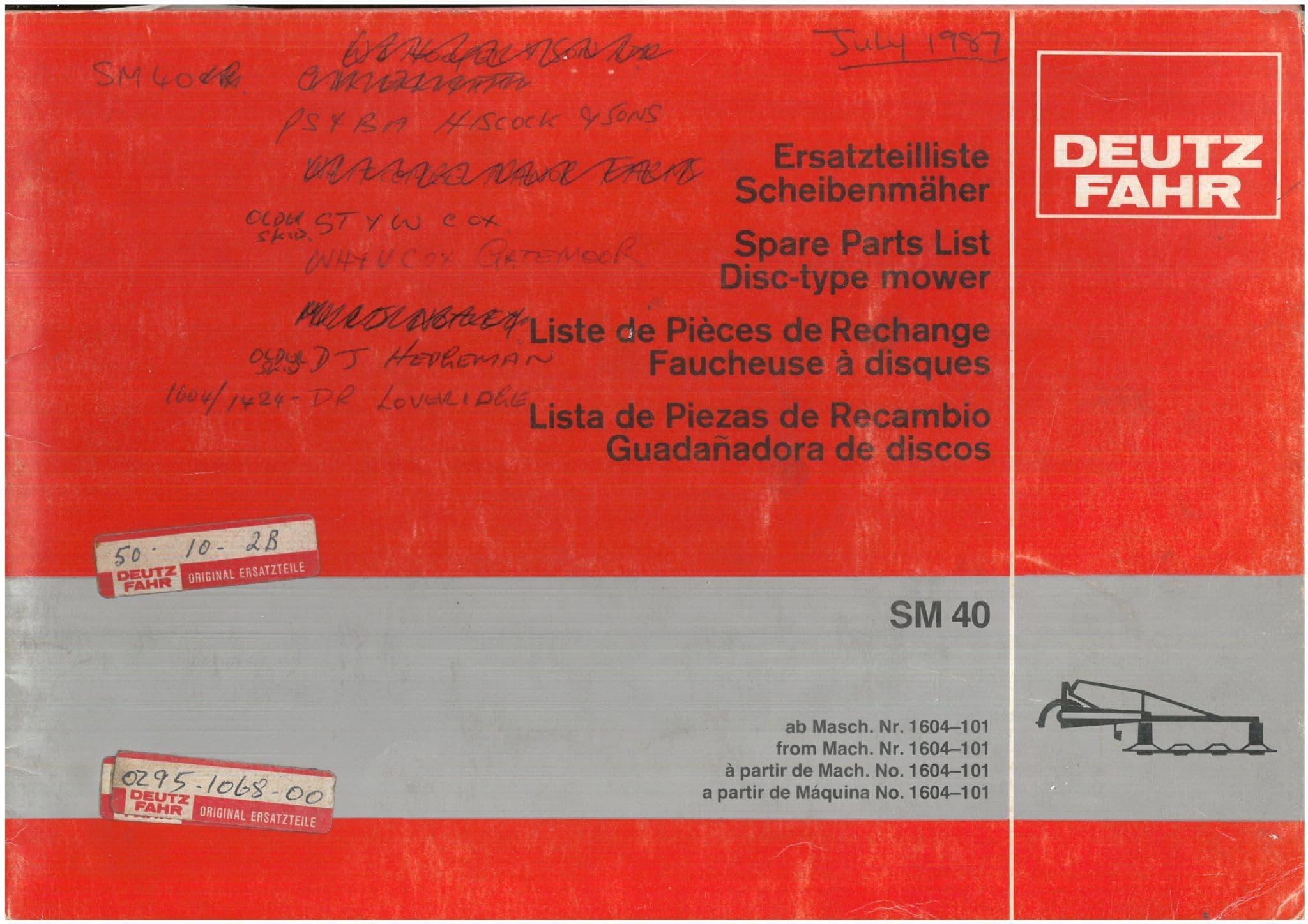 Mower & Topper Manuals Home / Implements Manuals / Hay & Forage Equipment Manuals / Mower & Topper Manuals / Deutz Fahr Disc Mower SM40 Parts Manual Deutz Fahr Disc Mower SM40 Parts Manual Deutz Fahr Disc Mower SM40 Parts Manual £16.99 Stock Status: In Stock Add to your Wish List Information Specifications Reviews ILLUSTRATED PARTS MANUAL WITH EXPLODED DIAGRAMS SHOWING VARIOUS COMPONENTS OF THE MACHINE, PARTS DESCRIPTIONS AND PARTS NUMBERS A REPRODUCTION OF THE ORIGINAL MANUAL CLICK ON THE IMAGE FOR AN ENLARGEMENT Store Ref - BX6 Product Code: BX6 Weight: 0.3kg Customer reviews No reviews left yet Write A Review Most RecentTop Rated No reviews have been left for this product, be the first to leave a review