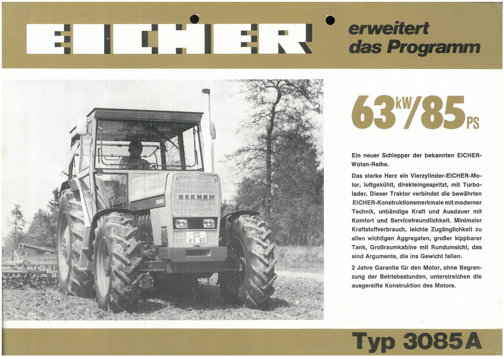 Eicher Tractor Model 3085A Brochure - In German