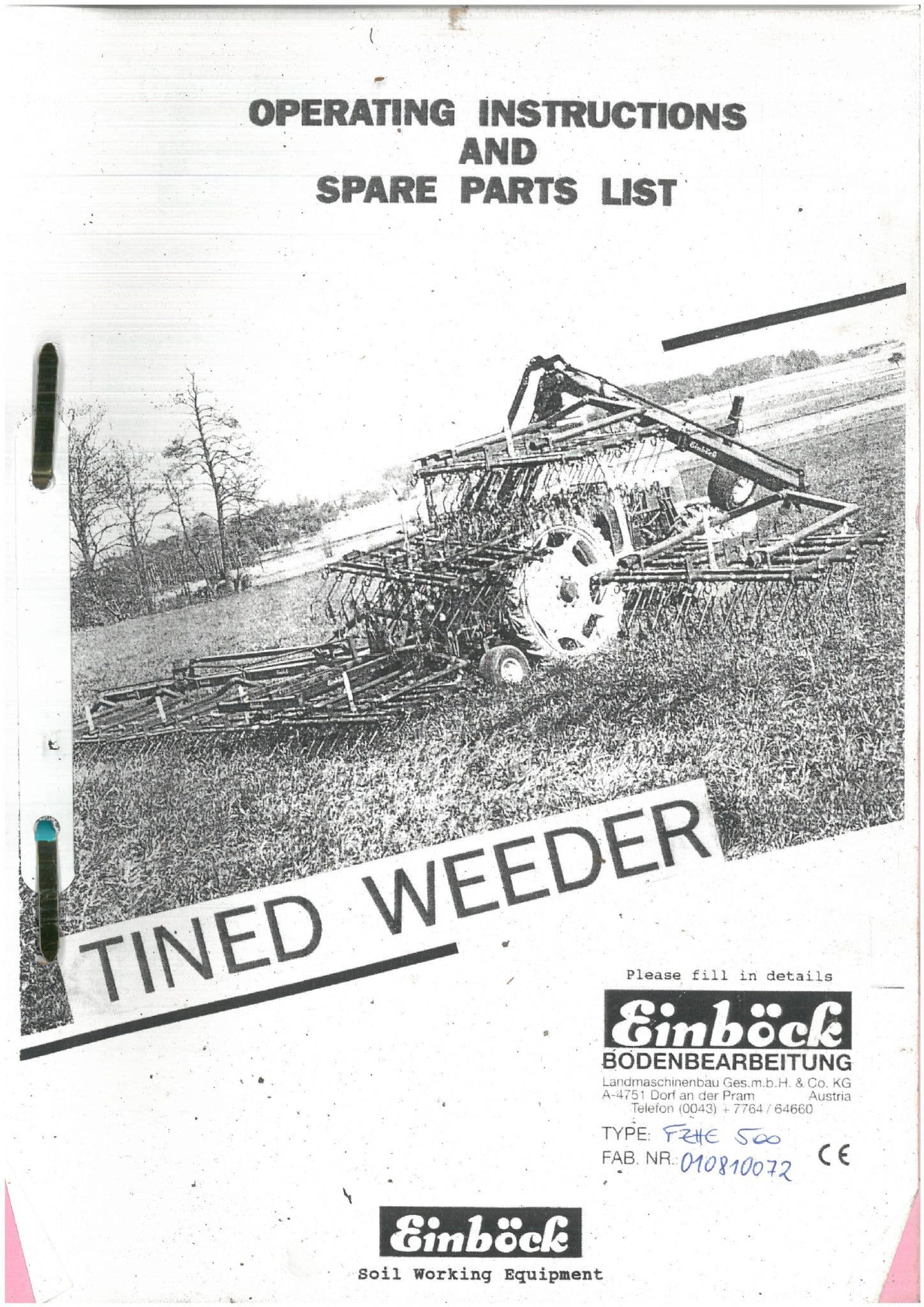 THIS OPERATORS MANUAL GIVES INFORMATION ON THE OPERATION, LUBRICATION,