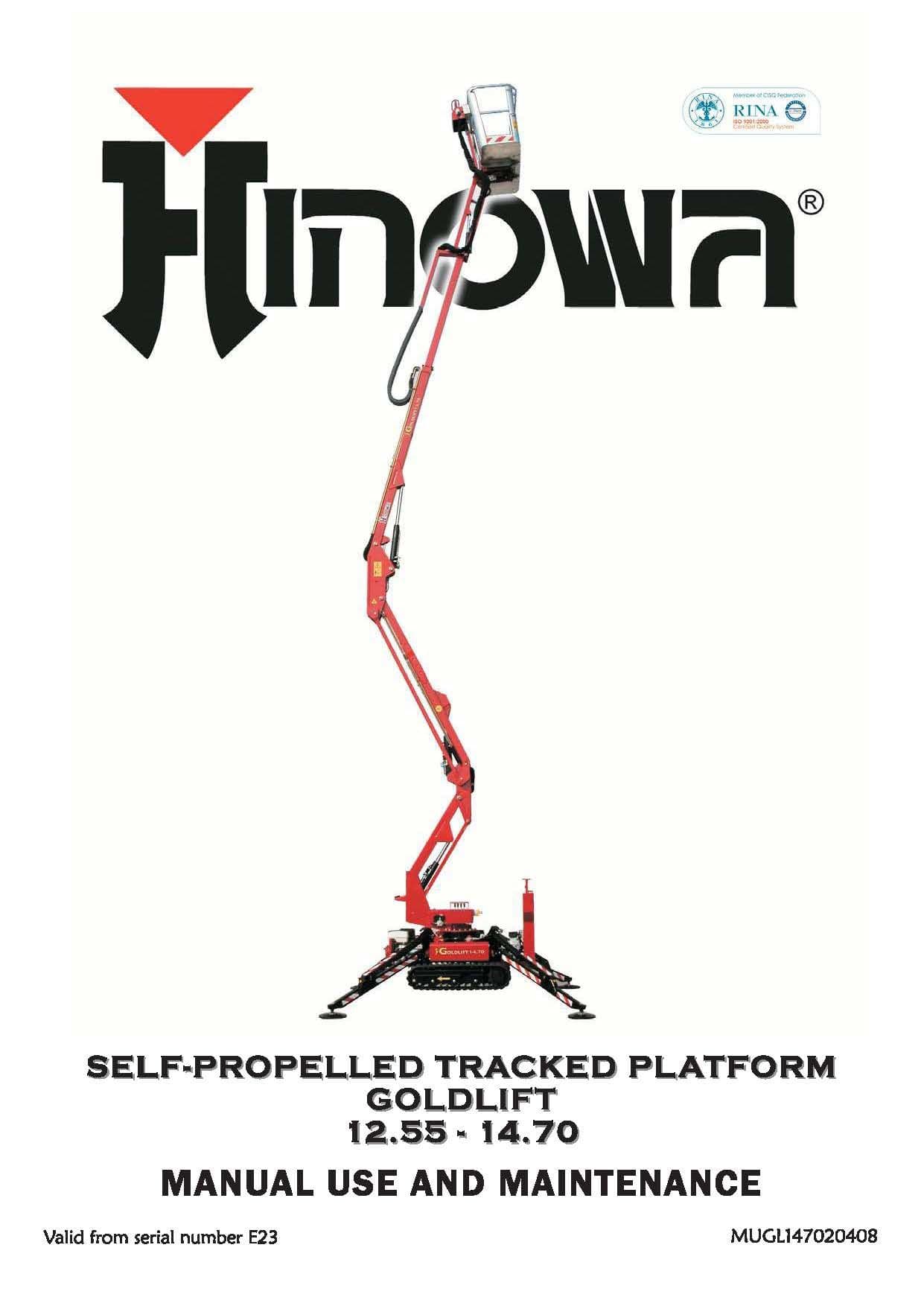 Hinowa Self Propelled Tracked Platform Goldlift 12.55 & 14.70 Operators and Maintenance Manual