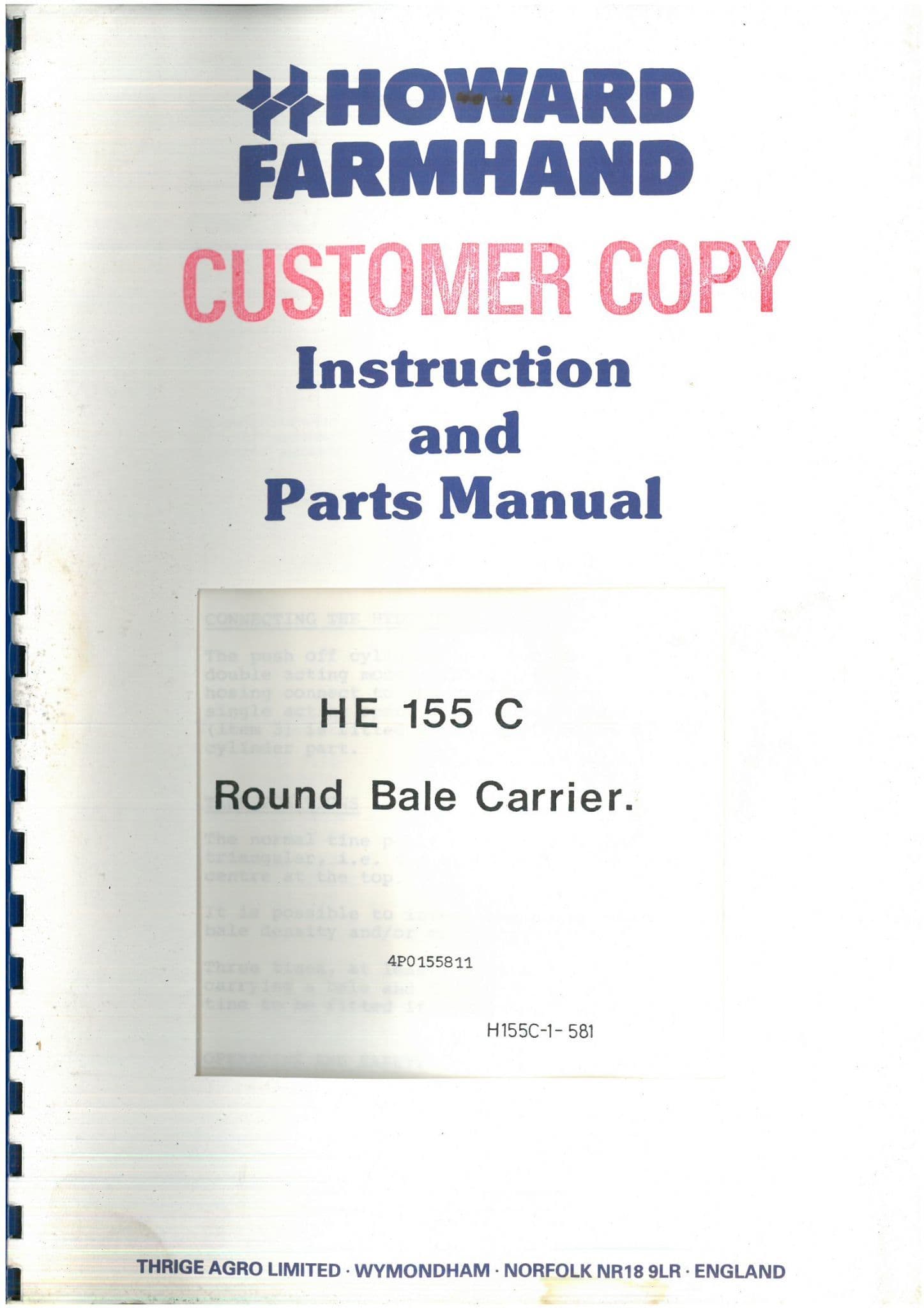Baler Manuals Home / Implements Manuals / Hay & Forage Equipment Manuals / Baler Manuals / Howard Round Bale Carrier HE155C Operators Manual and Spare Parts List Howard Round Bale Carrier HE155C Operators Manual and Spare Parts List Howard Round Bale Carrier HE155C Operators Manual and Spare Parts List £4.99 Stock Status: In Stock Add to your Wish List Information Specifications Reviews ILLUSTRATED PARTS MANUAL WITH EXPLODED DIAGRAMS SHOWING VARIOUS COMPONENTSA REPRODUCTION OF THE ORIGINAL MANUAL Store Ref XGF4 Product Code: XGF4 Weight: 0.2kg Customer reviews No reviews left yet Write A Review Most RecentTop Rated No reviews have been left for this product, be the first to leave a review