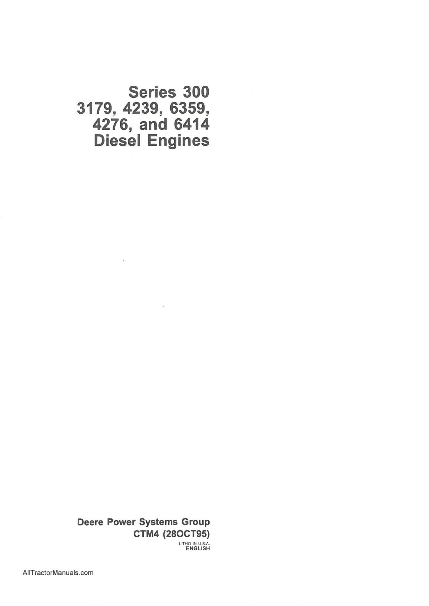 John Deere Diesel Engine Series 300 3179 4239 63594276 6414 Component Workshop Service Manual