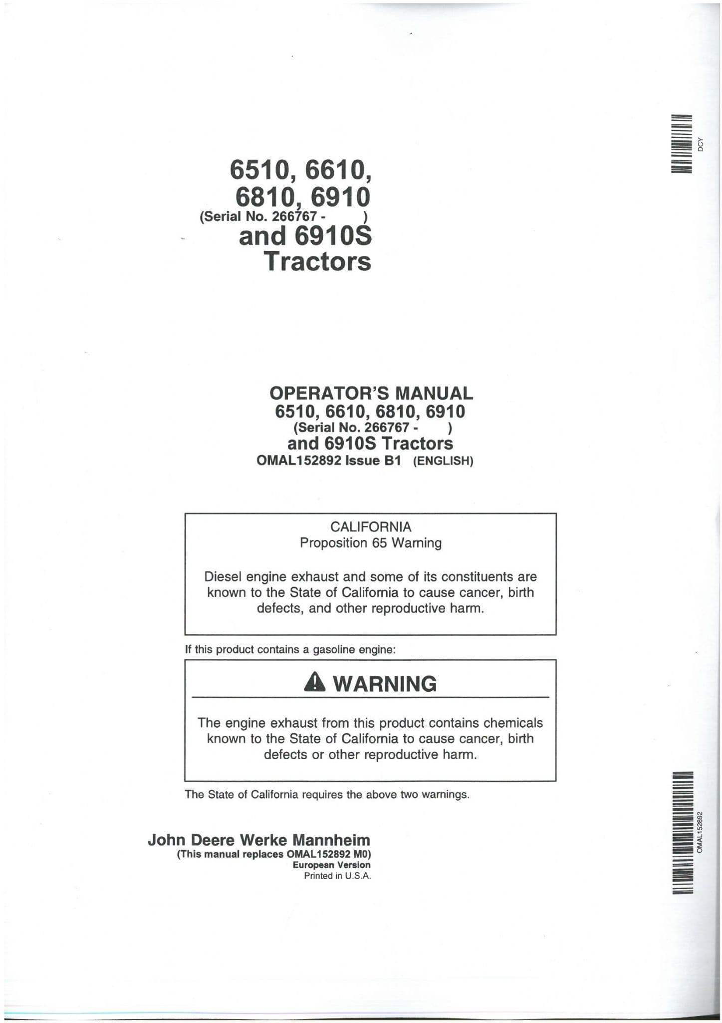 John Deere Tractor Manuals Home / Tractor Manuals / John Deere Tractor & Machinery Manuals / John Deere Tractor Manuals / John Deere Tractor 6510, 6610, 6810, 6910, 6910S Operators Manual John Deere Tractor 6510, 6610, 6810, 6910, 6910S Operators Manual John Deere Tractor 6510, 6610, 6810, 6910, 6910S Operators Manual £29.99 Stock Status: In Stock Add to your Wish List Information Specifications Reviews THIS OPERATORS MANUAL GIVES INFORMATION ON THE OPERATION, THE LUBRICATION, MAINTENANCE AND SAFETY ASPECTSILLUSTRATIONS AND DIAGRAMS TO COMPLEMENT THE TEXTAN OLDERCOPY/REPRODUCTION THAT CAME IN A JOB LOT WE BOUGHT INFOR AN ENLARGEMENT CLICK ON THE IMAGEStore Ref D-JB Product Code: D-JB Weight: 0.3kg Customer reviews No reviews left yet Write A Review Most RecentTop Rated No reviews have been left for this product, be the first to leave a review