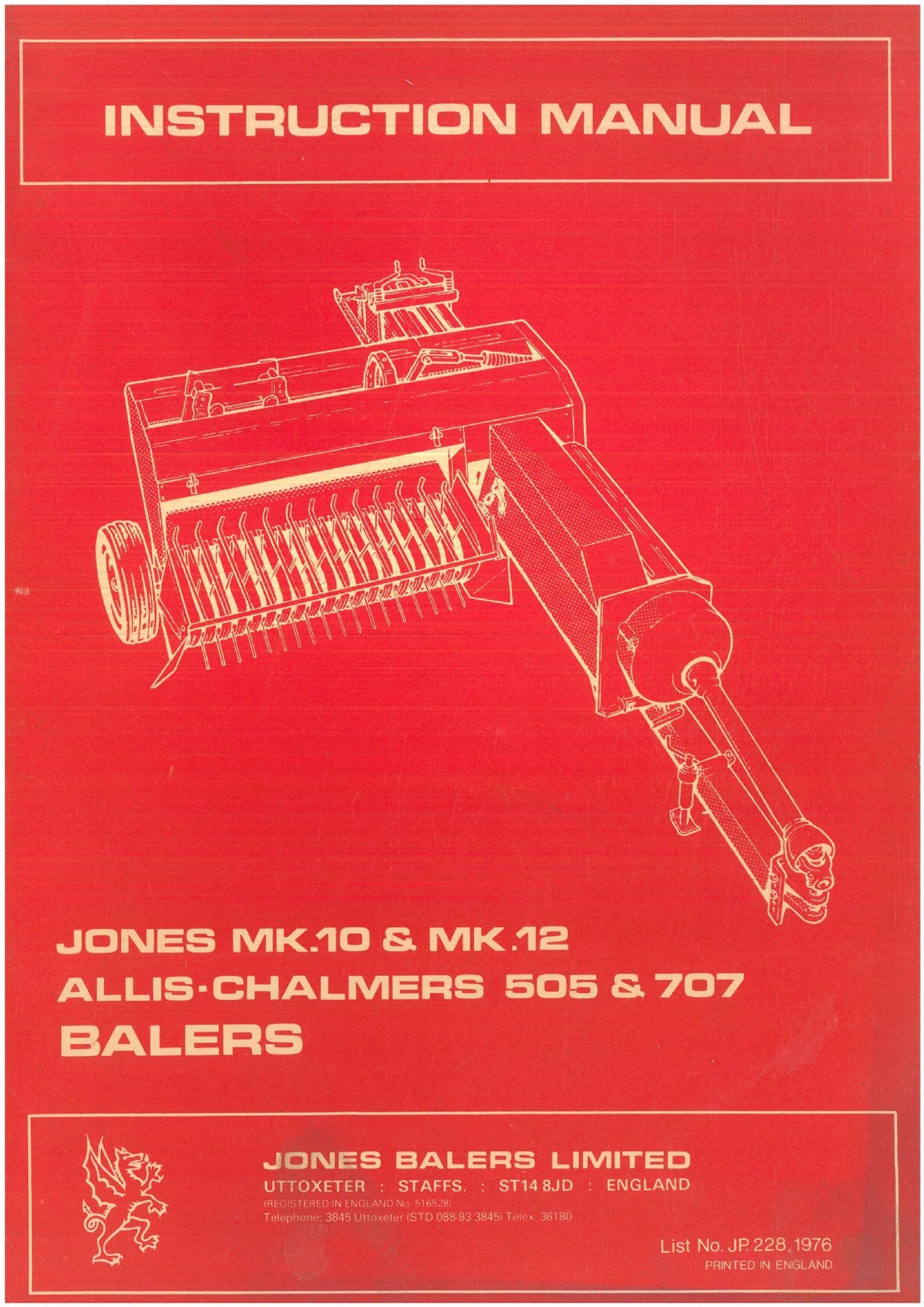 Baler Manuals Home / Implements Manuals / Hay & Forage Equipment Manuals / Baler Manuals / Jones Baler MK10, MK12 & Allis Chalmers Baler 505, 707 Operators Manual - ORIGINAL MANUAL Jones Baler MK10, MK12 & Allis Chalmers Baler 505, 707 Operators Manual - ORIGINAL MANUAL Jones Baler MK10, MK12 & Allis Chalmers Baler 505, 707 Operators Manual - ORIGINAL MANUAL £24.99 Stock Status: In Stock Add to your Wish List Information Specifications Reviews THIS OPERATORS MANUAL GIVES ADVICE ON THE OPERATION OF THE MACHINE THE LUBRICATION AND MAINTENANCE SAFETY ASPECTS. INCLUDES ILLUSTRATIONS AND DIAGRAMS TO COMPLEMENT THE TEXT. FOR AN ENLARGEMENT CLICK ON THE IMAGE AN ORIGINAL MANUAL IN GOOD USED CONDITION Store Ref - ALPS1 Product Code: ALPS1 Weight: 0.2kg Customer reviews No reviews left yet Write A Review Most RecentTop Rated No reviews have been left for this product, be the first to leave a review