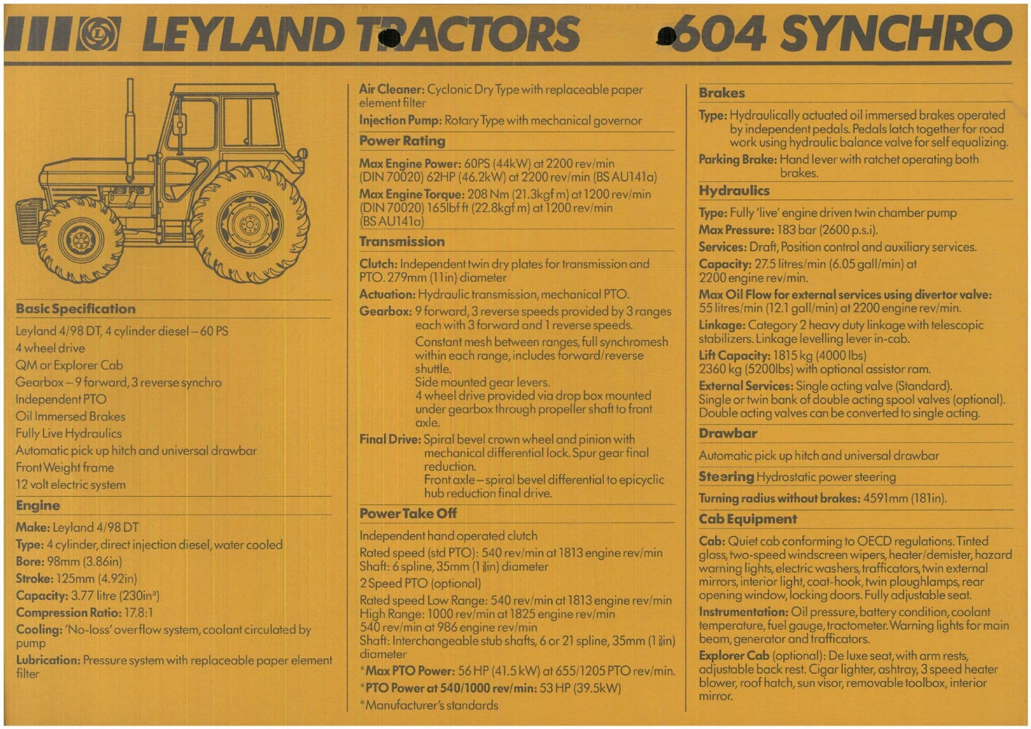 Leyland Tractor 604 Synchro Data Sheet