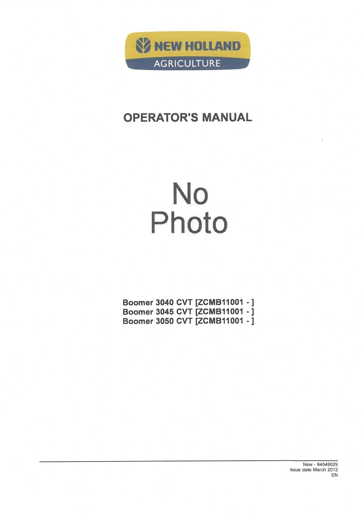 New Holland Compact Tractor Boomer 3040CVT 3045CVT 3050CVT Operators Maunual