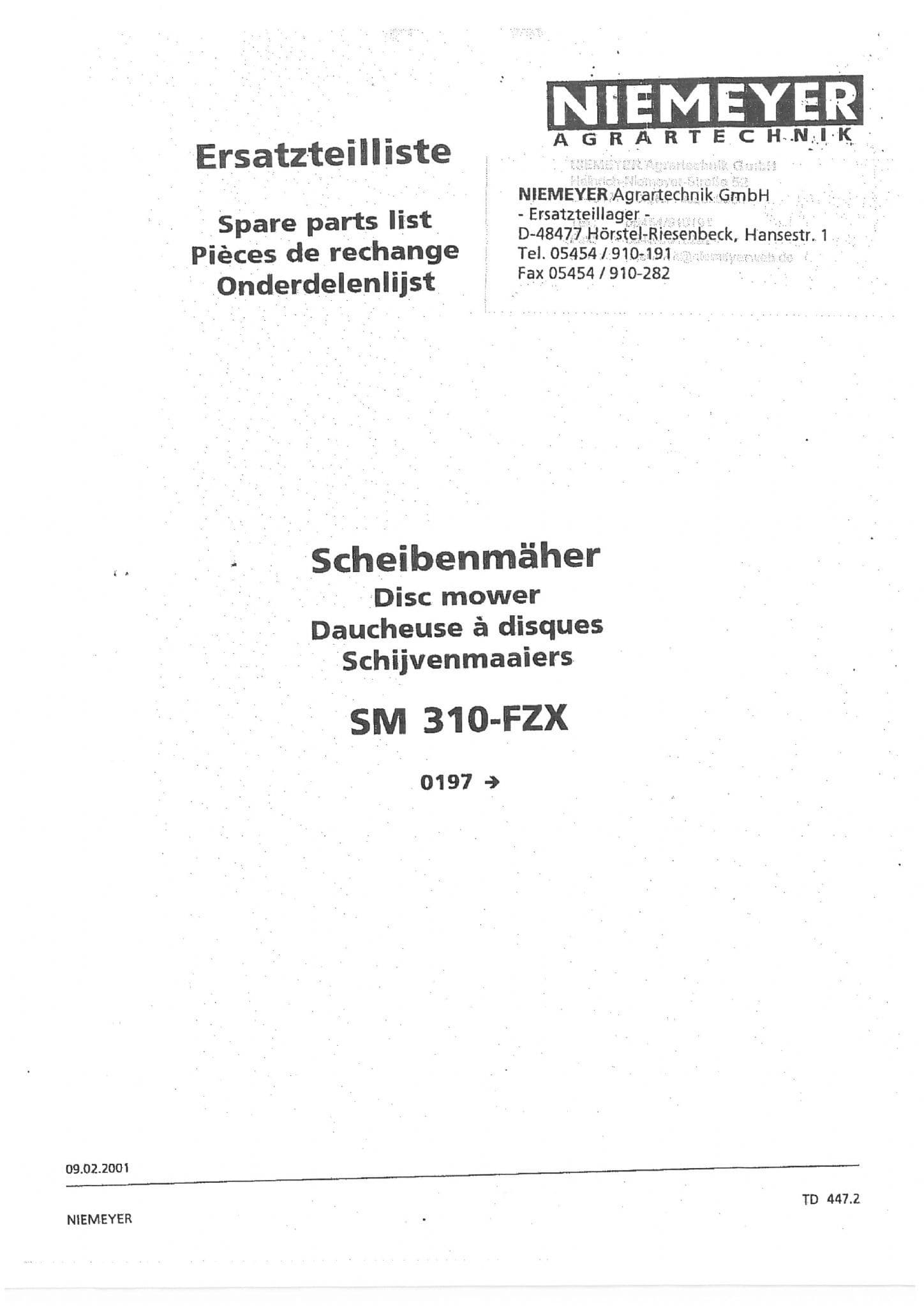 Niemeyer Disc Mower SM310FZX Parts Manual