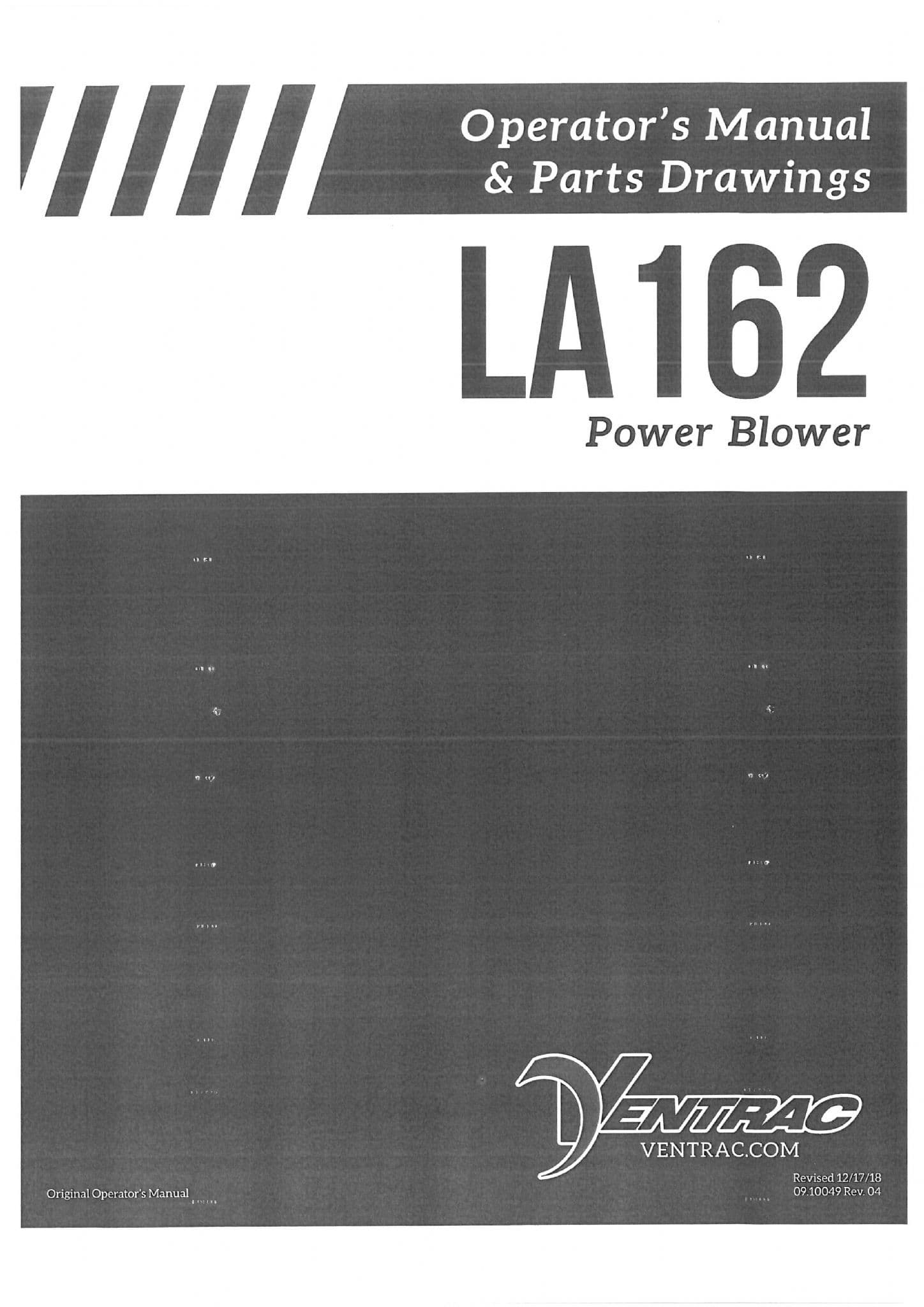 Ventrac Power Blower LA162 Operators Manual and Parts List