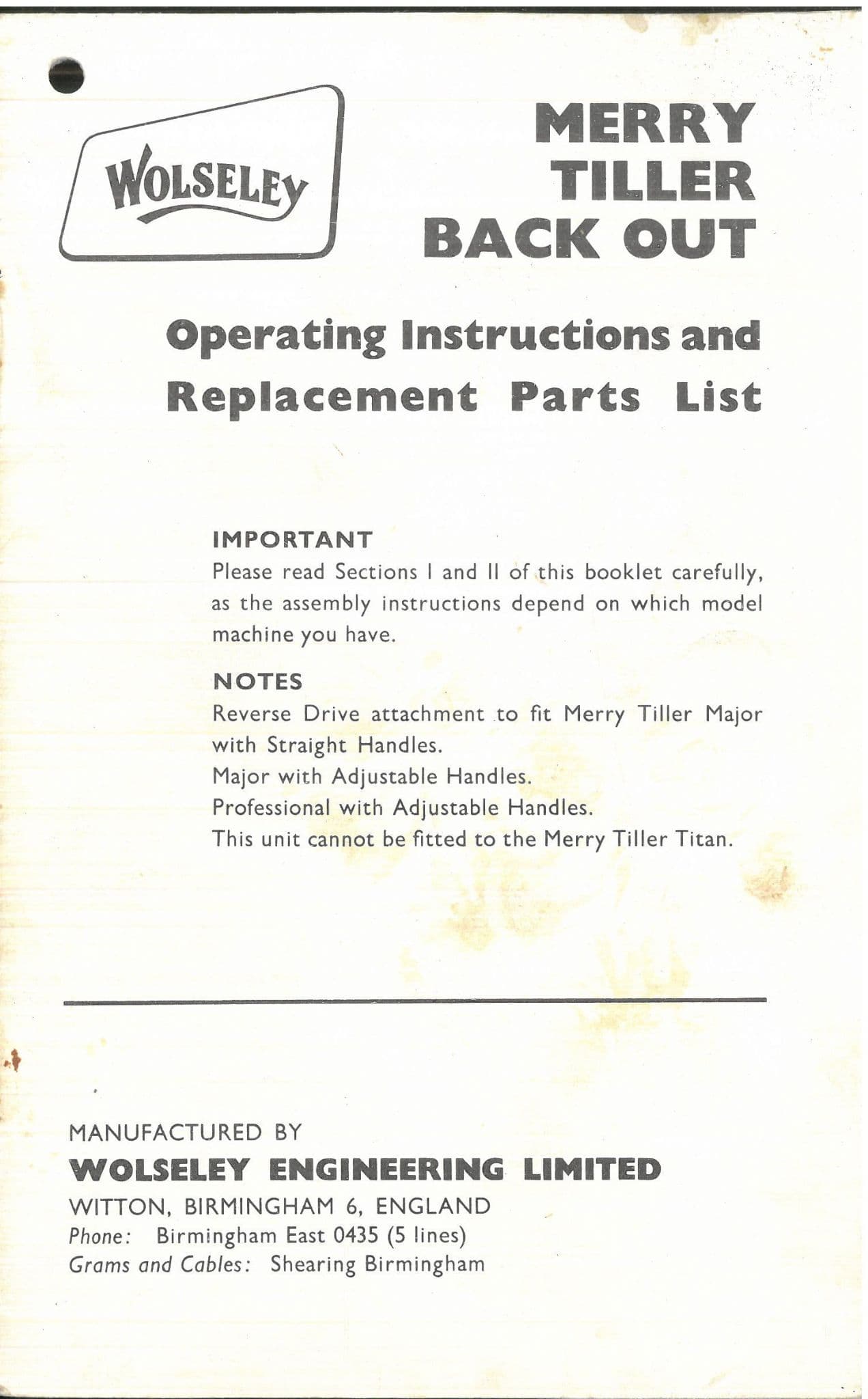 A REPRODUCTION OF THE ORIGINAL MANUAL - 12 PAGES